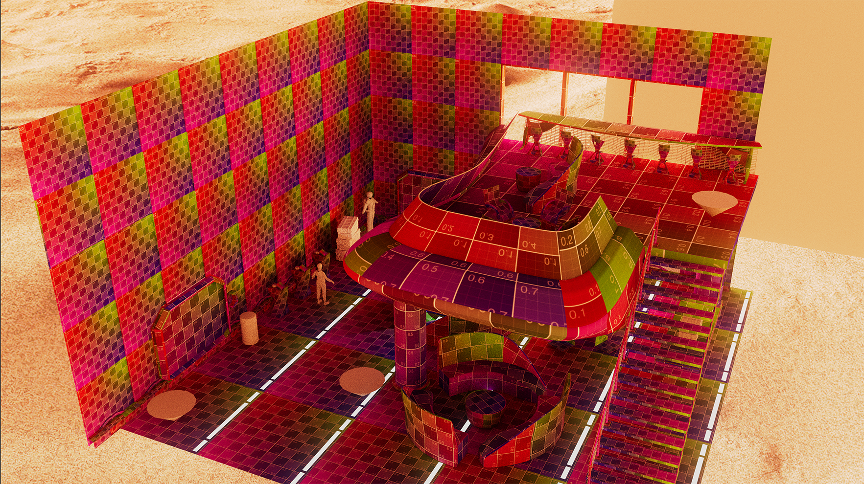 There is a really interesting dwelling built into a cave in Northwest Arkansas called the Beckham Creek lodge. I tried integrating cinematic sci-fi reference with this idea of embedding the hotel lobby into the side of a cave. I identified some of the modular components I would need to start building out and scaling up the scene.